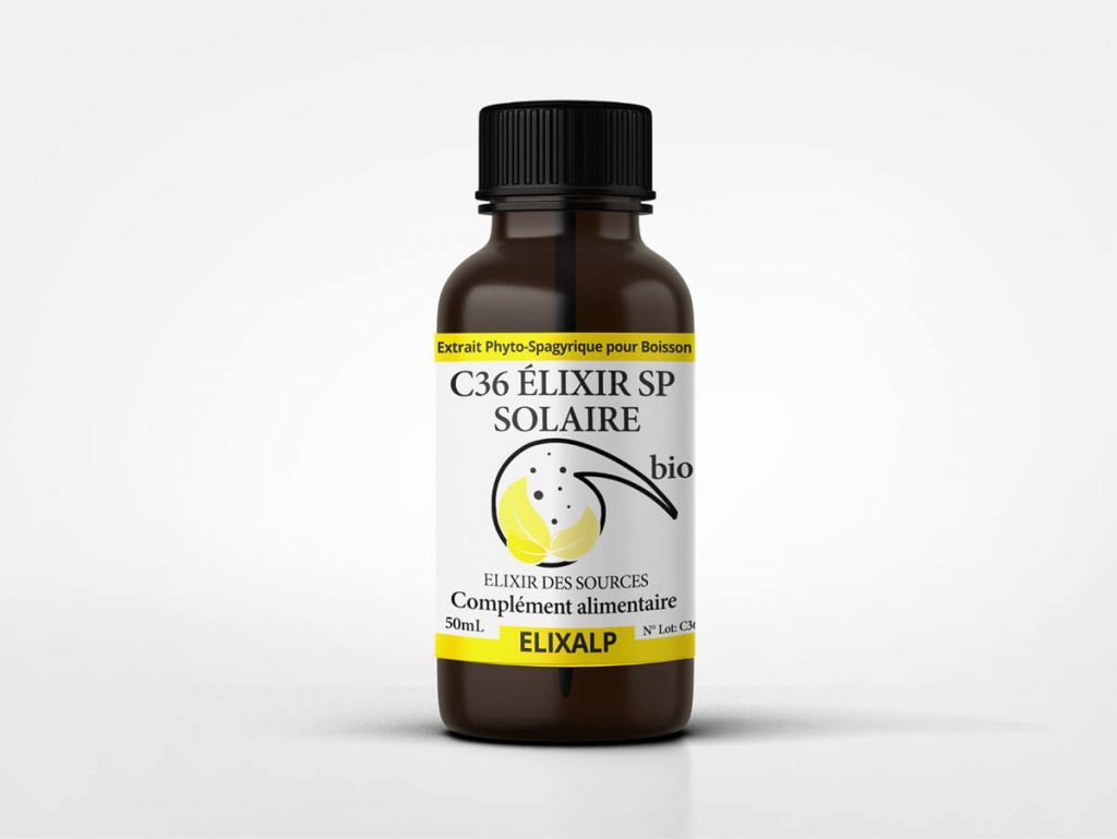 Aspects psycho-existentiels : L’Élixir Spagyrique SOLAIRE permet d’accéder et d’enflammer le noyau intact de l’Enfant intérieur vierge de connaissances, le centre de gravité qu’est le cœur, de pacifier l’être en réveillant une forte densité du Moi, ce qui le relie à son schéma corporel indestructible. L’Élixir libère l’humain enfermé, l’aide à se réjouir du Soi, à renouveler un lien humanisé avec son corps en le percevant dans sa globalité par un Voir, Sentir, Goûter, réharmonisés. Il aide à mener à bonne fin ce qui a été entrepris, à accompagner le mourant en nous ; à remettre de la chaleur de vie pour desceller les fermetures internes tout en apprenant à se distancer. Il conduit à libérer le noble dire humain, à concevoir l’inconcevable. Posologie : 30 gouttes le MATIN à diluer dans un verre d’eau + quelques gouttes au Sternum.